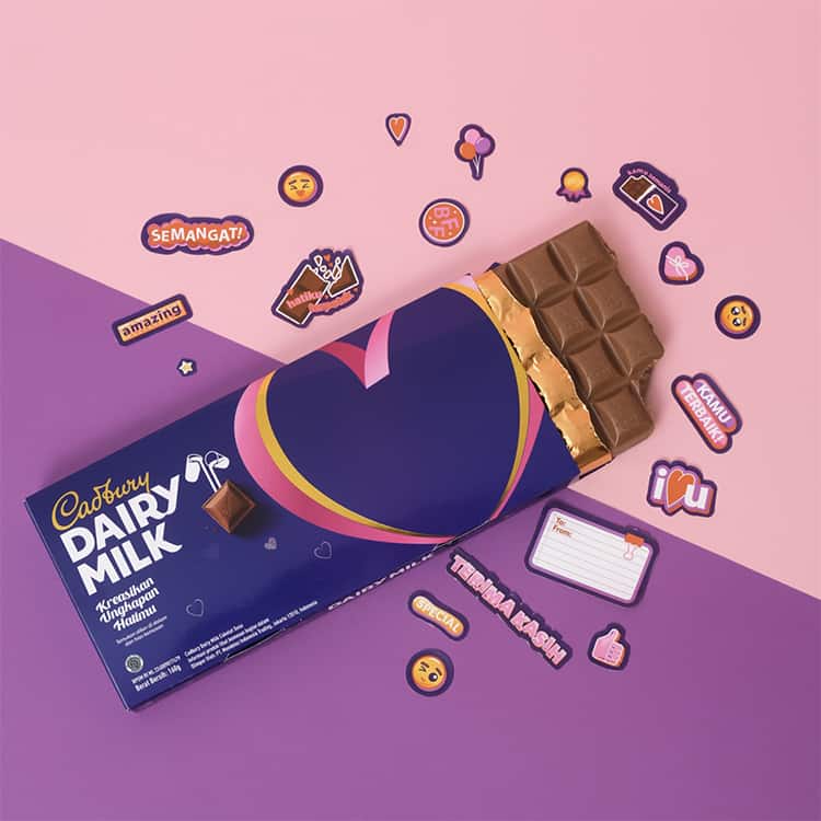 Pada momentum hari kasih sayang ini, Cadbury juga meluncurkan kemasan spesial edisi terbatas “Ungkapan Hati” yang dilengkapi satu set stiker untuk dikreasikan, guna memudahkan setiap orang dalam mengkreasikan isi hati. Lebih dari sekedar tampilan visual yang menarik, set stiker yang disediakan dalam kemasan edisi spesial ini juga berisi dengan banyak emoji lucu dan menarik, sehingga dapat memudahkan setiap orang dalam mengkreasikan isi hatinya.